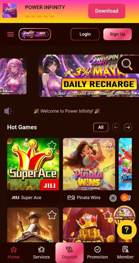 POWER INFINITY is fully optimized for mobile users. The platform supports both mobile browser play and app-based gaming, ensuring smooth performance on Android and iOS devices. The availability of an App Download Bonus further encourages mobile gameplay, making it ideal for players who prefer gaming on smartphones.